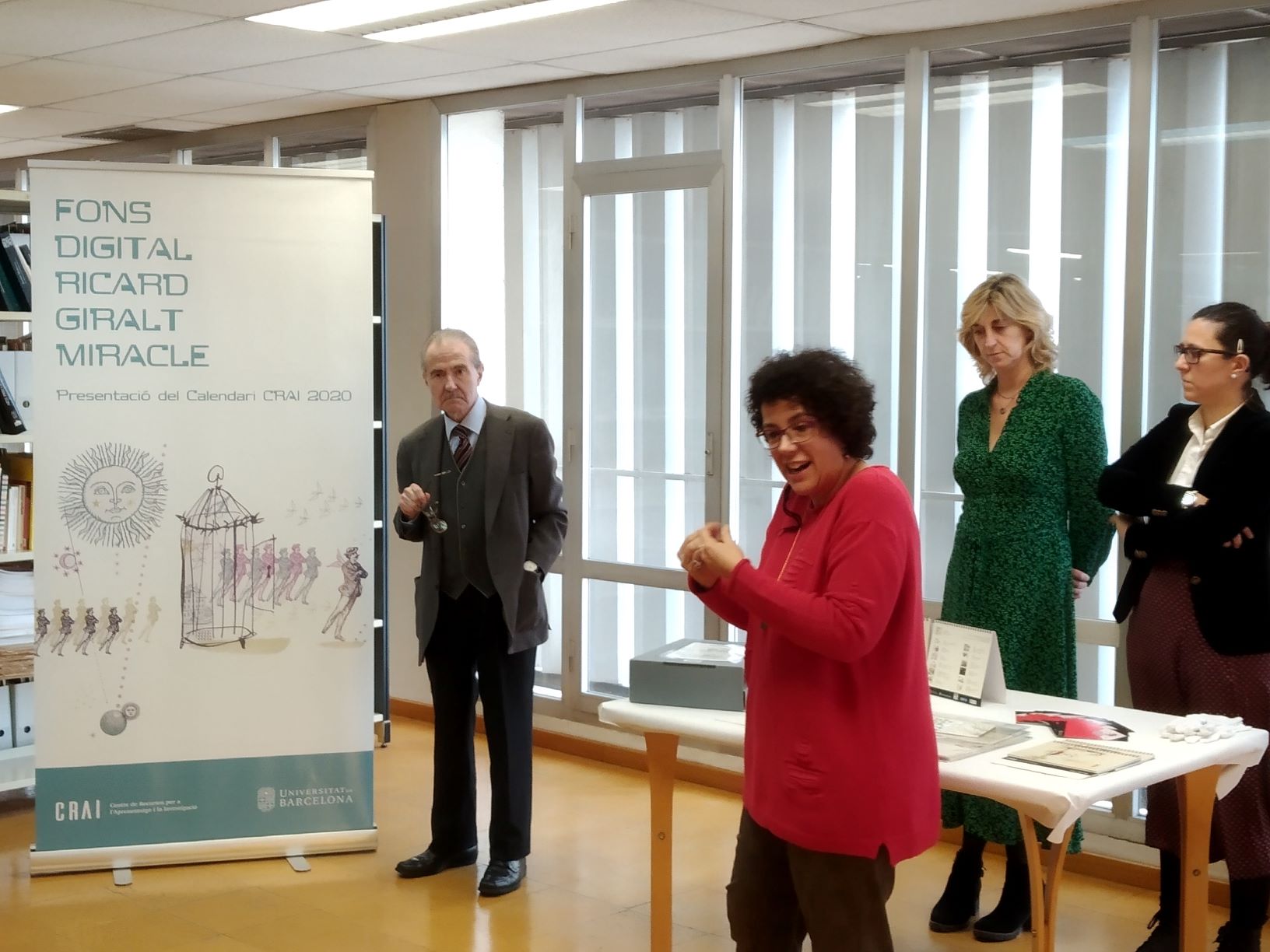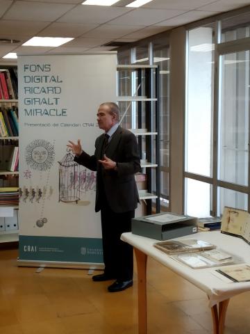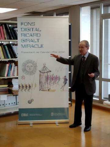 La presentació, tal com s'havia anunciat a les notícies de la UB, ha comptat amb la presència del Sr. Daniel Giralt-Miracle -donant de la col·lecció de 'Plaquetes' del seu pare, Ricard Giralt Miracle- i de la Directora del CRAI, Judit Casals. Les 'Plaquetes' de Giralt Miracle han estat la base del disseny del calendari d'enguany.