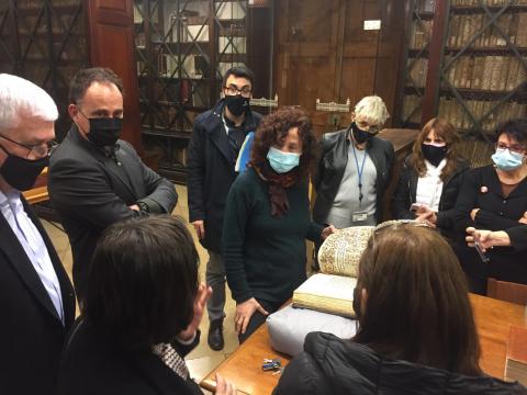 Per tal de respectar les mesures COVID, els visitants es van dividir en tres grups i, a més de donar alguna pinzellada de la seva història i els trets més essencials del CRAI biblioteca de fons antic, es van ensenyar dos manuscrits, un incunable i dos impresos del segle XVI. L'interès pel fons de la biblioteca va ser evident i va representar un punt de partida per als nous projectes en aquesta nova etapa.