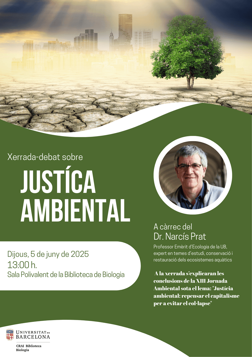 Per acompanyar aquesta activitat, el CRAI Biblioteca prepararà una mostra bibliogràfica sobre justícia ambiental que es podrà visitar del 2 al 10 de juny.