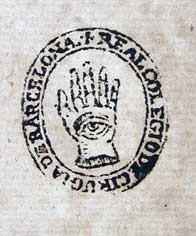 Molts dels llibres encara conserven el segell de la biblioteca que mostra una mà amb un ull al palmell, símbol de la pràctica de la cirurgia.